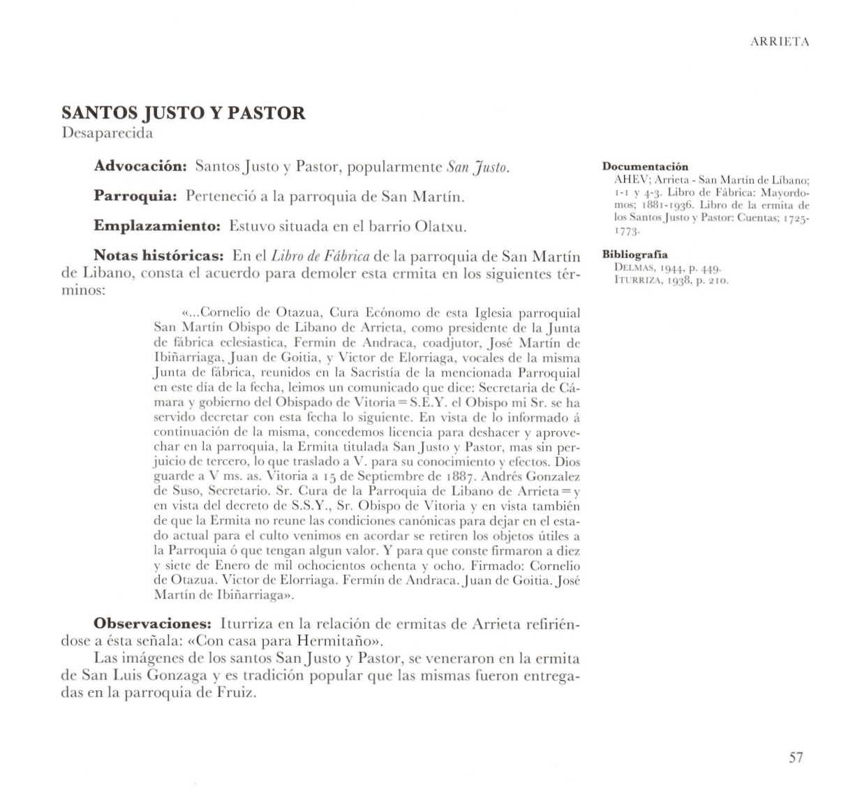 Arrieta - Santos Justo y Pastor - Olatxu ( Desaparecida )