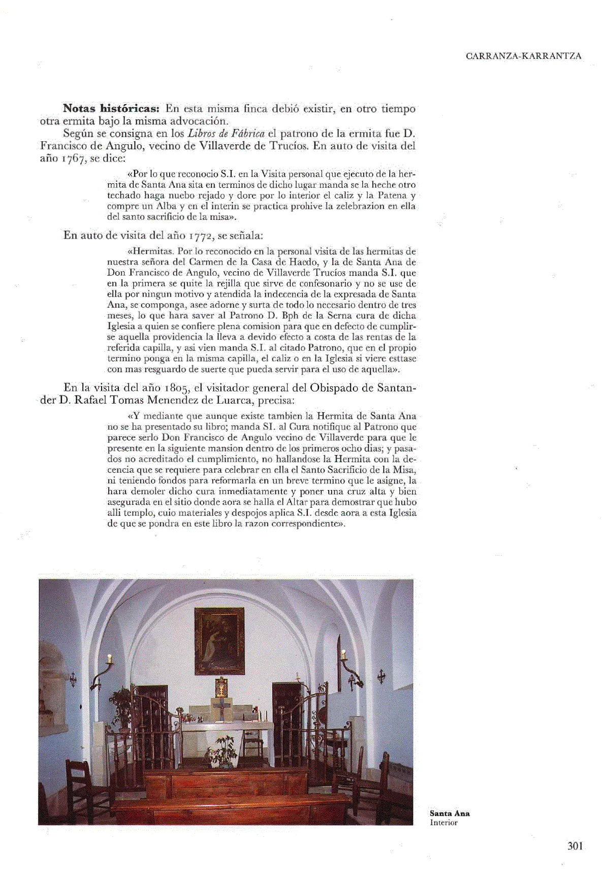 ZONA DE PRESUNCIÓN ARQUEOLÓGICA. Clave A: Área intramuros del edificio http://www.euskadi.eus/app/ondarea/patrimonio-arqueologico/ermita-de-santa-ana/ermita/karrantza-harana-valle-de-carranza/fichaconsulta/60543 https://www.euskadi.eus/y22-bopv/es/bopv2/datos/1997/05/9702862a.pdf |