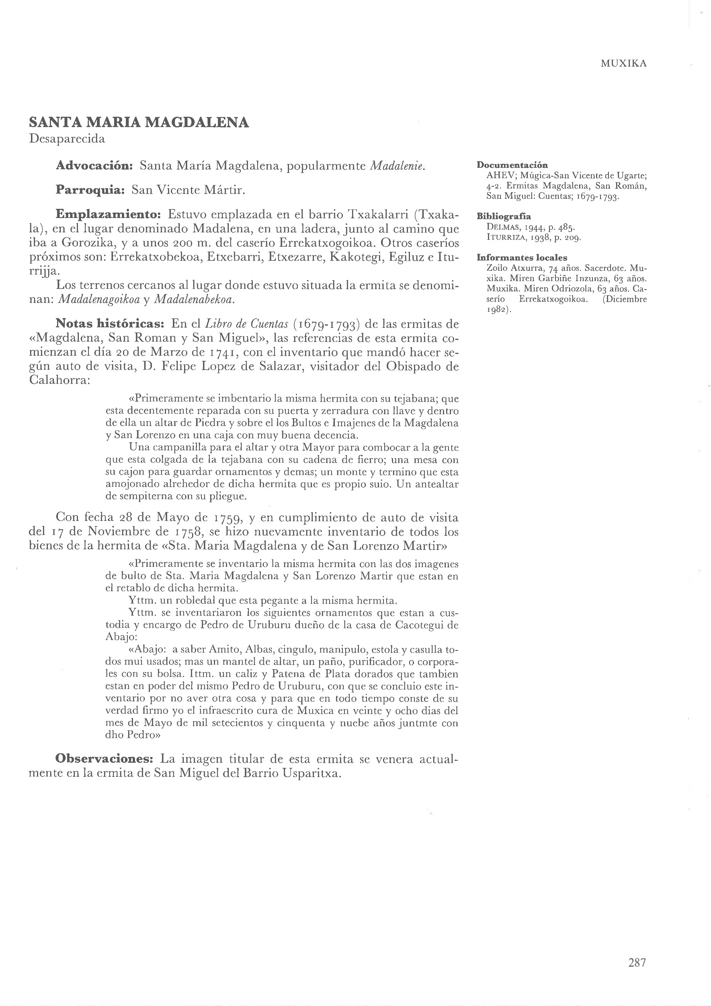 Muxika - Santa María Magdalena - Txakalarri ( Desaparecida )